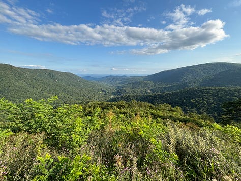 We left our campsite in Pennsylvania early and made our way to Shenandoah National Park for the day. After a long, hot week, the cool mountains felt like a treat. We spent most of the day winding along Skyline Drive, pulling off at overlooks to soak in all of the views. Midday, we stopped at a small cafe in the park for blackberry cobbler topped with vanilla ice cream. The berries and crust perfectly balanced between tart and sweet, and the melting ice cream tied it all together in one perfect bite. Zac mentioned he could easily eat another if given the chance.