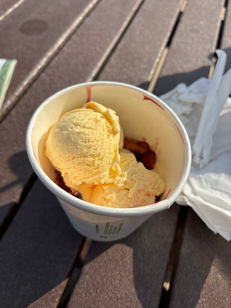 We were running out of ideas for things to do in the area, so when we realized Gettysburg was nearby, we decided on a low-pressure plan: a drive through town and maybe some ice cream. We stopped at Appalachian Brewing Company first, a spot that we recognized from the last time we were in town, and enjoyed a couple of drinks before moving on in search of dessert. I was hoping to revisit the chocolate peanut butter flavor from Mr. G’s I’d fallen in love with last time, but it wasn’t on the menu. I settled for a coffee scoop, which was fine but not quite what I was hoping for. Zac, on the other hand, made a last-minute decision to grab the day’s special, a large soft serve with sprinkles, and looked pretty pleased with himself. The ice cream shop had live music on their patio, but since we hadn’t paid for parking, we decided to eat in the truck. Truthfully, we’d already seen most of Gettysburg on our last visit, so after our quick food stops, we just headed home. Not our most adventurous day on the road, but with no real plans this week, we were making do with what we had.
