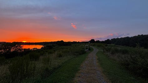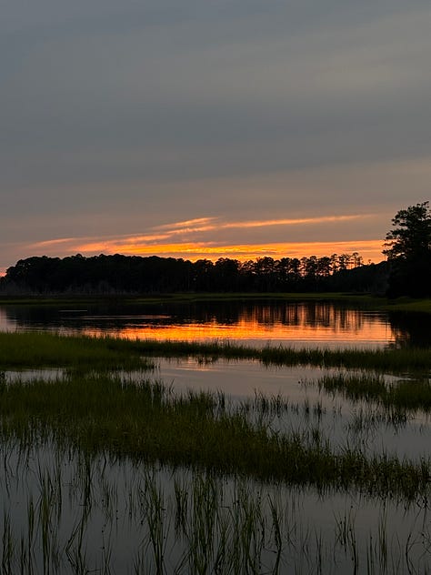 We continued south from Richmond and made it to our new campground for the week in Virginia. Our new home was gorgeous, but I’ll save those details for next week’s Base Camp section. That evening, we found a trail that wound through the north end of the campground and out toward the water. A boardwalk stretched over the marsh, and the sunset was already putting on a show with soft pastels. The bugs had other plans, though, and we eventually retreated uphill, where we caught the sky changing into bright purples and deep oranges. We took far too many photos, none of which could do the moment justice.