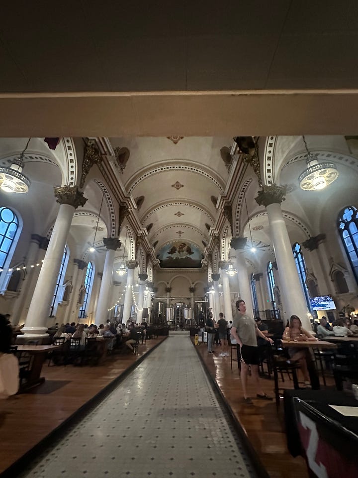 Instead, we made our way to a brewery inside of an old church - The Ministry of Brewing. The place had kept all its original charm, just with tables scattered where the pews used to be and a long bar off to one side. We ordered a flight and settled at the end of the bar, where we watched the Savannah Bananas game going on in the city. After our drinks, we realized our energy was fading fast. It was starting to get dark, and with a decent drive back to the RV, we called it a night without hitting the rest of the Baltimore stops I’d planned.